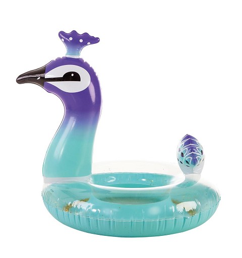 El pavo real es un ave realmente bella y popular, famoso por su belleza sin inigual, elegancia y esplendor, lo que convierte a este animal en un ave realmente especial, y que no pasa desapercibida en ningún lugar, al igual que te pasará a ti este verano con este fantástico y bello flotador hinchable con forma de pavo real, y decorado, además, con purpurina dorada en su interior, y que además, está diponible en varios tamaños.