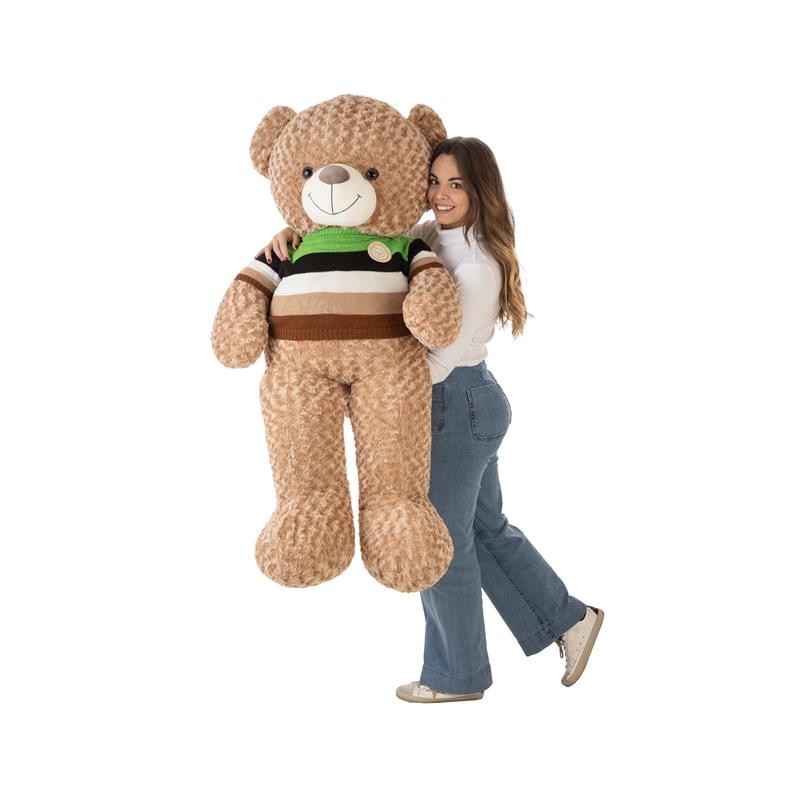 - El tamaño del peluche en la imagen con la modelo es de 120 cm.